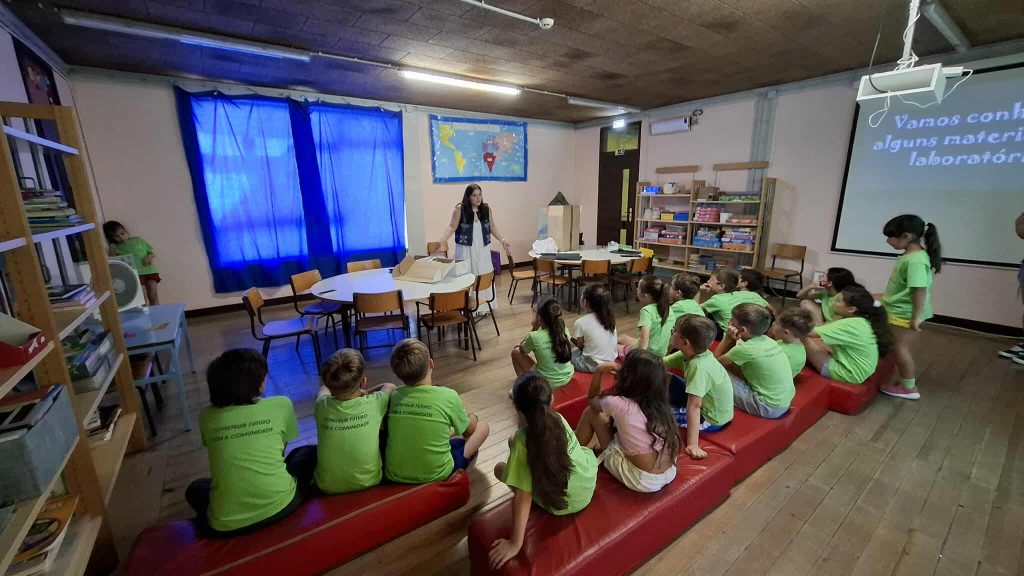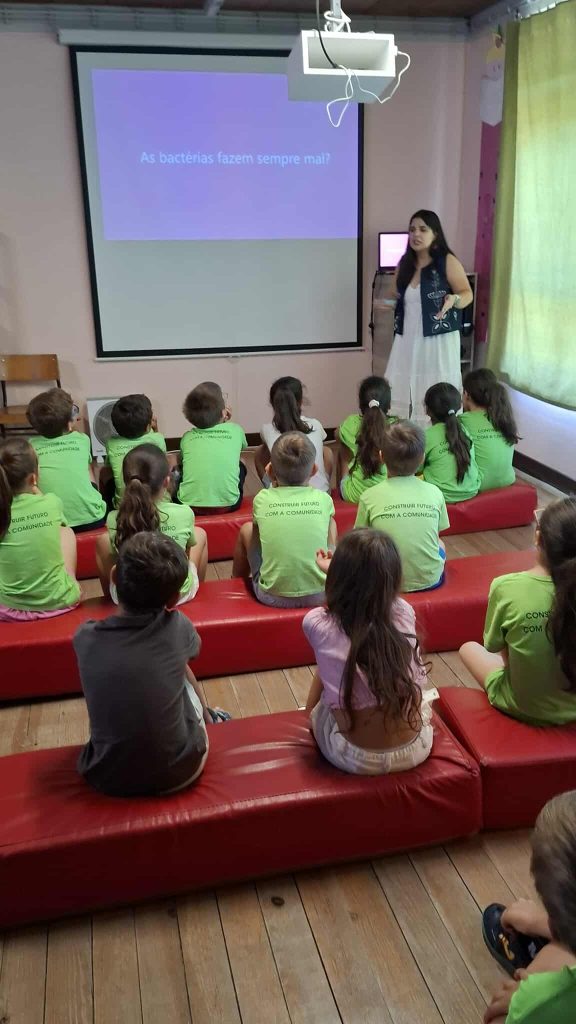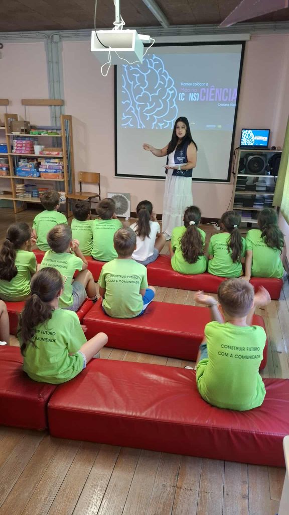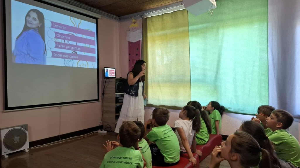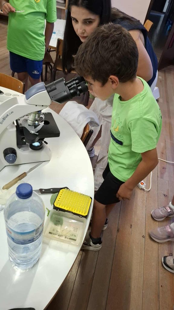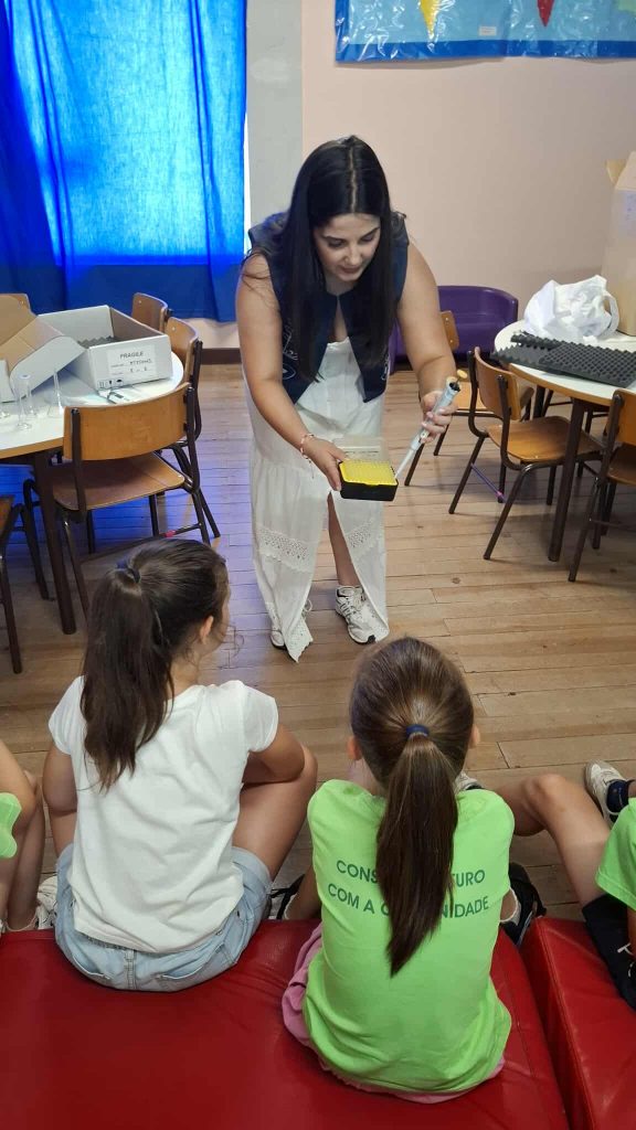 Com um brilho nos olhos e paixão pelo conhecimento, Cristiana trouxe consigo material de laboratório, incluindo um microscópio e outros instrumentos científicos que permitiram às crianças uma aproximação prática e divertida ao mundo da ciência. Ao longo da sessão, os participantes recolheram e observaram amostras, fizeram perguntas e descobriram como pequenos detalhes podem revelar grandes segredos do nosso universo.