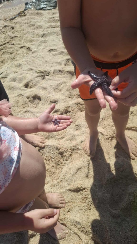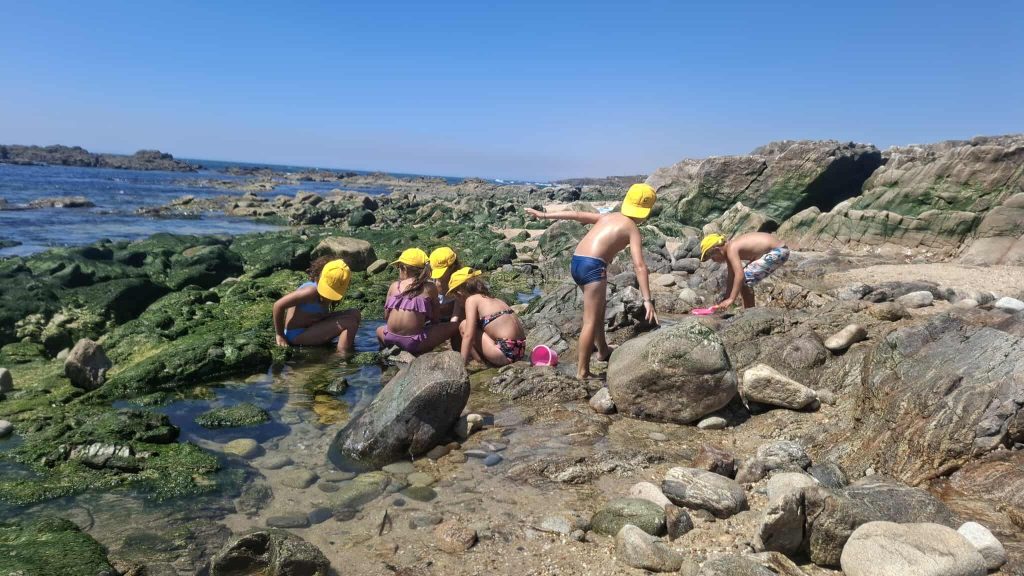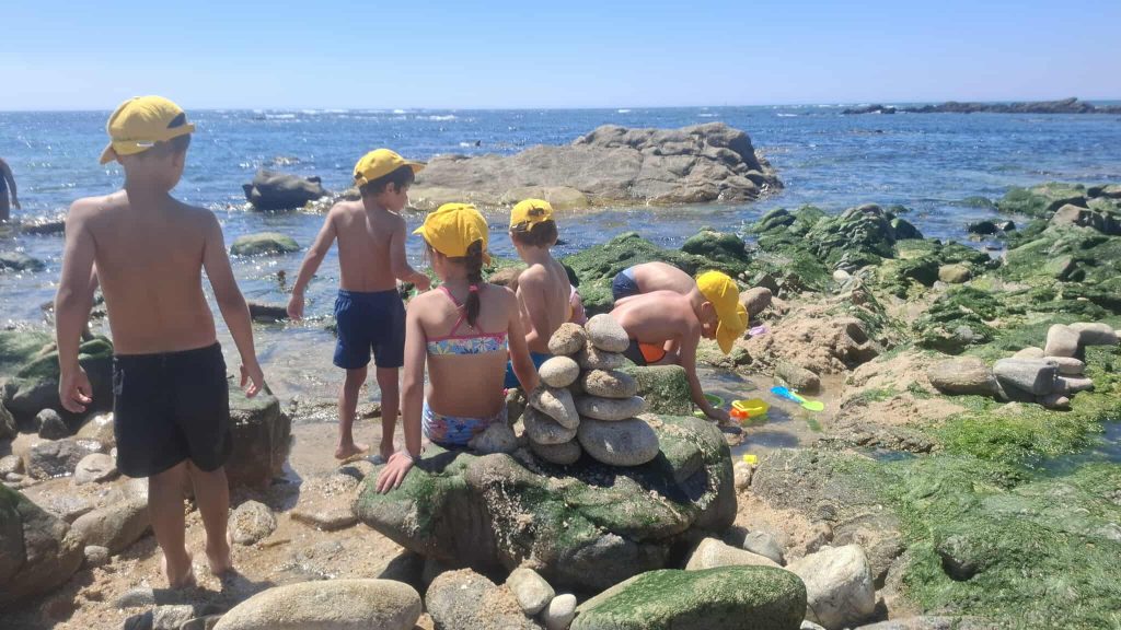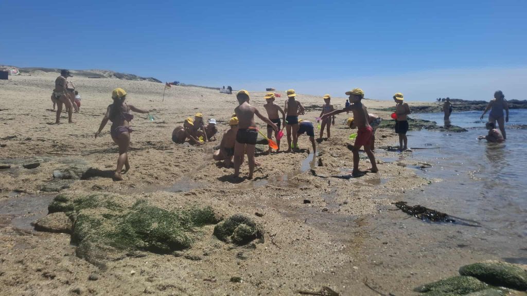 O dia foi recheado de momentos divertidos: castelos de areia, corridas pelas ondas e explorações cuidadosas entre as rochas, onde, com grande entusiasmo, descobriram pequenas estrelas-do-mar, uma surpresa mágica que encantou todos os pequenos exploradores.