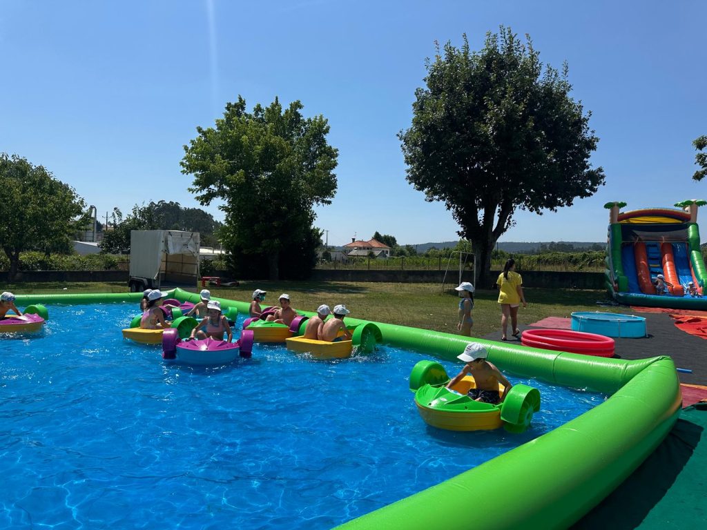 A iniciativa incluiu piscinas refrescantes, um divertido insuflável com escorrega, que foi o favorito de muitos, e ainda um animado “dia dos barcos”, onde as crianças puderam explorar e brincar com mini-embarcações, desenvolvendo a imaginação e o espírito de partilha.