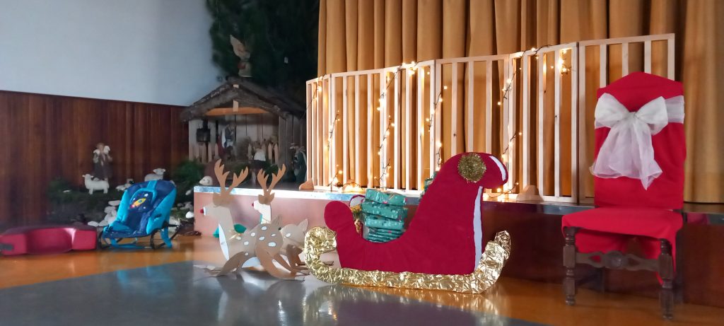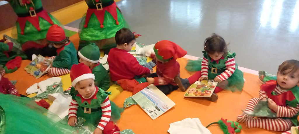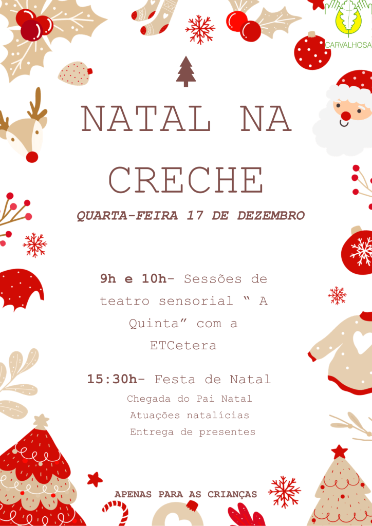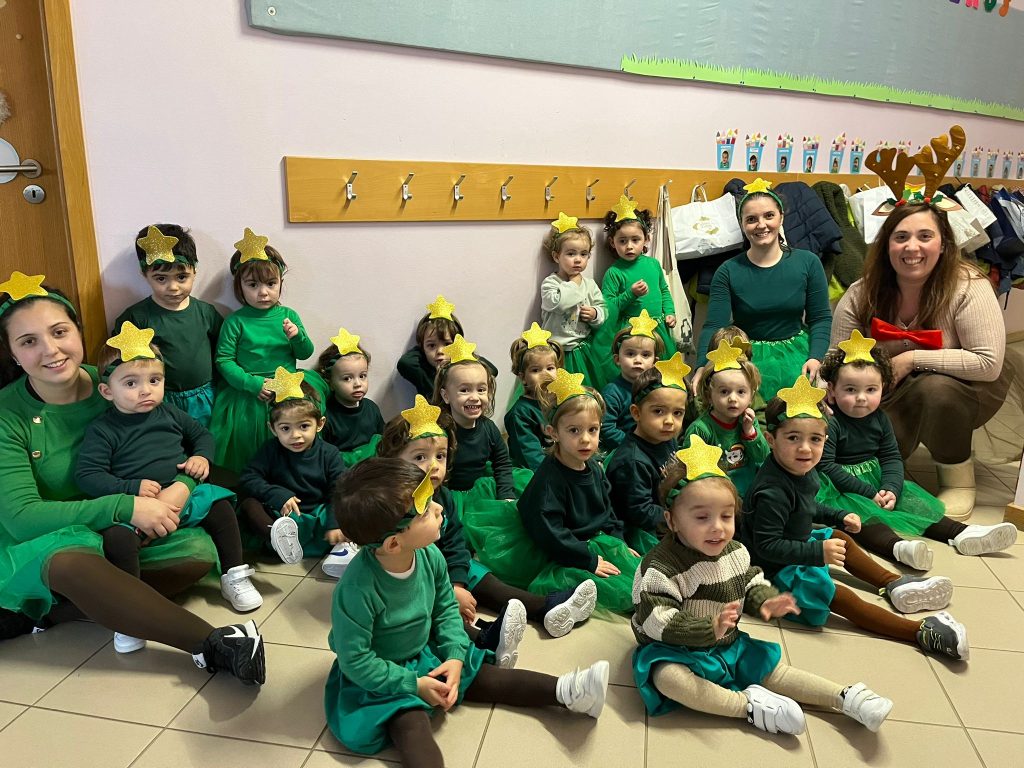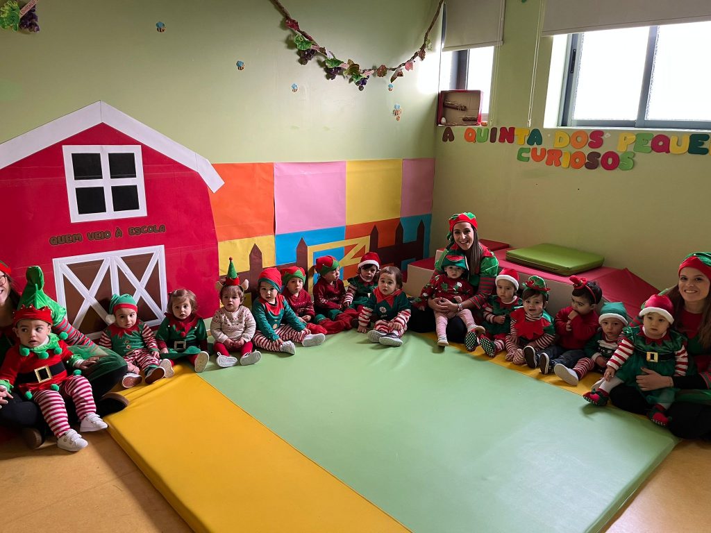 A alegria voltou a borbulhar com a chegada eufórica do Pai Natal no seu trator cheio de prendas. Cada sala da creche presenteou o Pai Natal com uma atuação, estando vestidos a preceito.