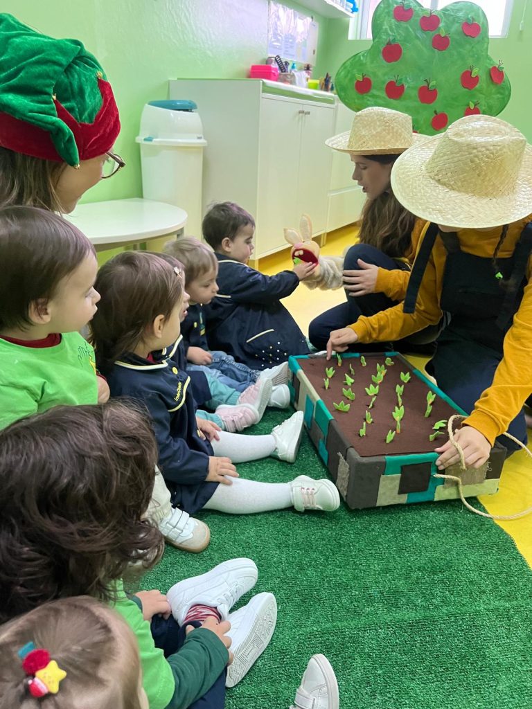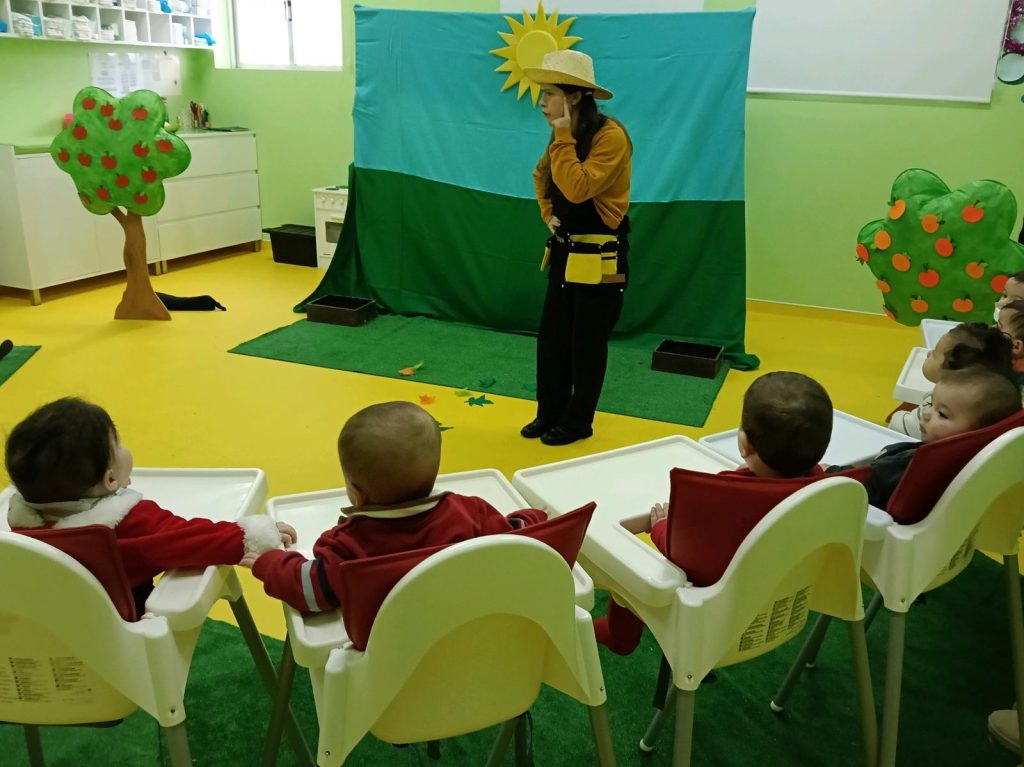 Começamos o dia a embarcar numa fantástica viagem sensorial com a encantadora Companhia de Teatro Etecetera. Com mãos, olhinhos e ouvidos curiosos observaram e exploraram diferentes rotinas da “Quinta”.
