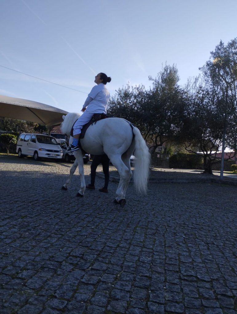 A fantasia saltou das páginas do livro para o pátio com um cavalo disponibilizado por Pedro Silva. Esta interação permitiu às crianças vivenciar o toque, o respeito pelos animais e a superação de pequenos medos.